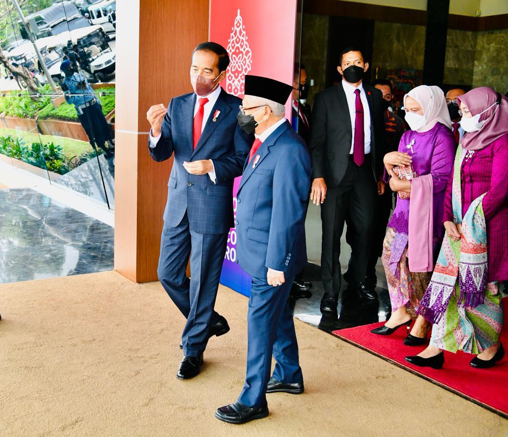 Tampak melepas keberangkatan Presiden Jokowi di Bandara Internasional Soekarno-Hatta adalah Wakil Presiden Ma’ruf Amin beserta Ibu Wury Ma’ruf Amin, Menteri Sekretaris Negara Pratikno, Panglima TNI Jenderal Andika Perkasa, Kapolri Jenderal Pol. Listyo Sigit Prabowo, dan Pj. Gubernur Banten Al Muktabar. (jan)