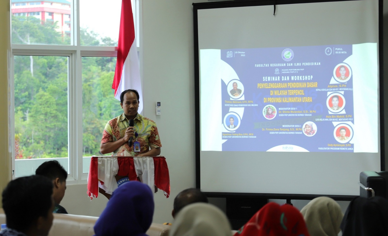Wakil Dekan Fakultas Keguruan dan Ilmu Pendidikan Universitas Borneo Tarakan (FKIP UBT), Ridwan membuka kegiatan Seminar dan Workshop Penyelenggaraan pendidikan dasar di wilayah terpencil Kalimantan Utara beberapa waktu lalu. FKIP UBT mempersiapkan penyelenggaraan pendidikan dasar di wilayah terpencil sebagai salah satu mata kuliah baru tahun akademik 2024/2025.