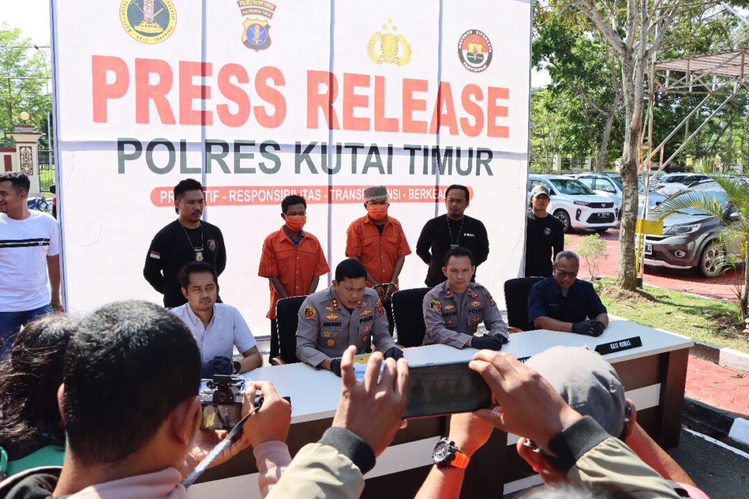 Kapolres Kutim AKBP Anggoro Wicaksono didampingi Wakapolres Kompol Damus Asa dan Kasat Reskrim IPTU I Made Jata Wiranegara saat menggelar press rilis, Kamis (1/9/2022) pagi. (Sumber : Humas Polres Kutim)