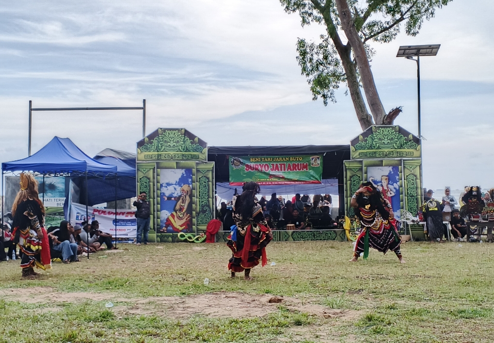 Paguyuban Jaranan Buto Suryo Jati Arum tampil memukau dengan tarian kuda lumping yang sarat energi dan unsur mistik, membuat pengunjung larut dalam atmosfer tradisi yang begitu hidup.