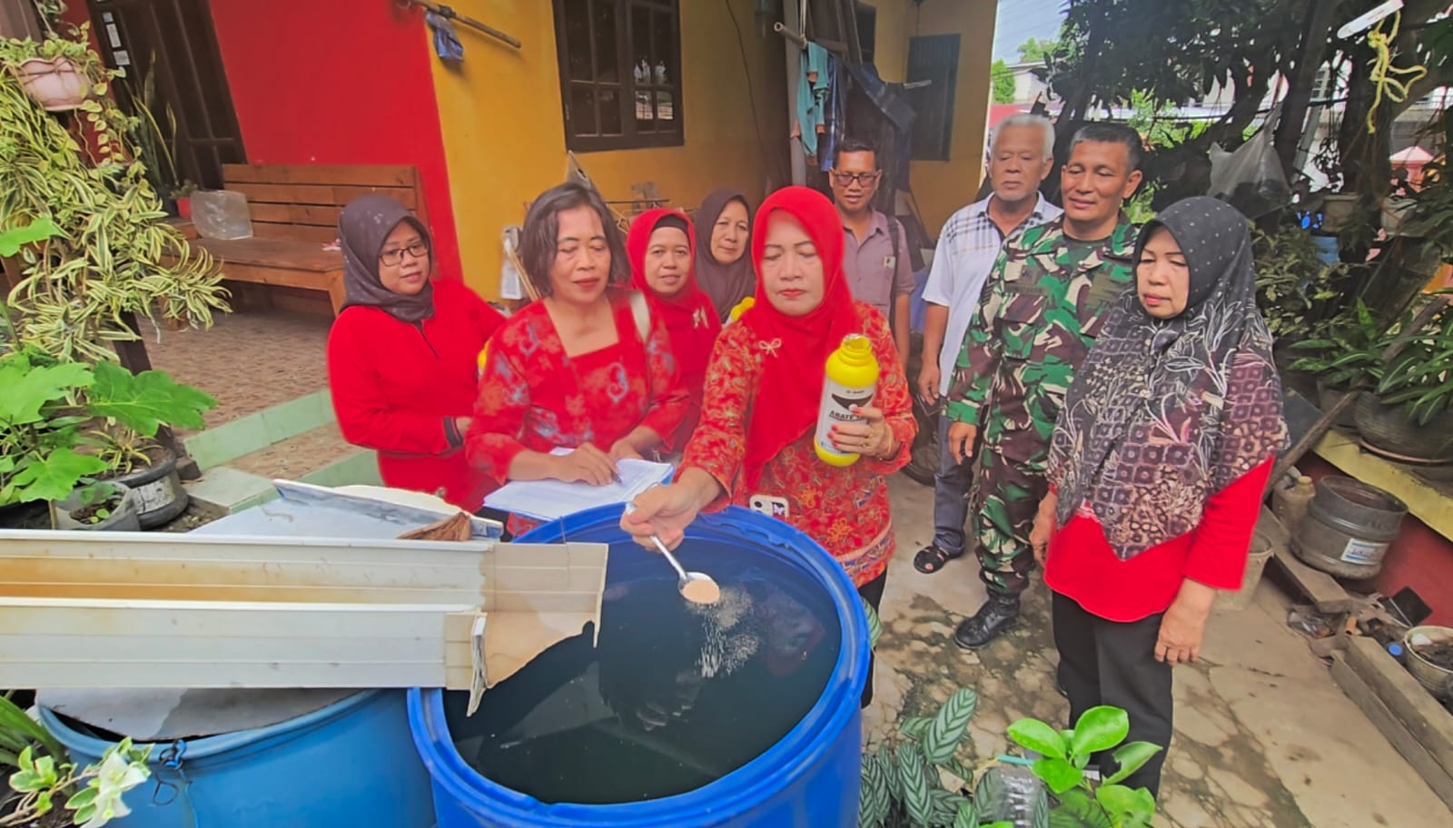 Khususnya, Kader Juru Pemantau Jentik (Jumantik) RT 01 Sungai Nangka bersama Puskesmas Gunung Bahagia kembali melakukan pemantauan jentik nyamuk Aedes aegypti sebagai upaya pencegahan dini Demam Berdarah Dengue (DBD).