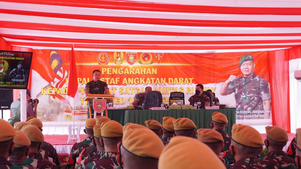 Kepada para prajurit yang merupakan garda terdepan di perbatasan RI-Malaysia tersebut, Kasad menekankan bahwa tugas Pengamanan Perbatasan (Pamtas) merupakan tugas mulia dan tugas negara yang harus dipegang teguh.