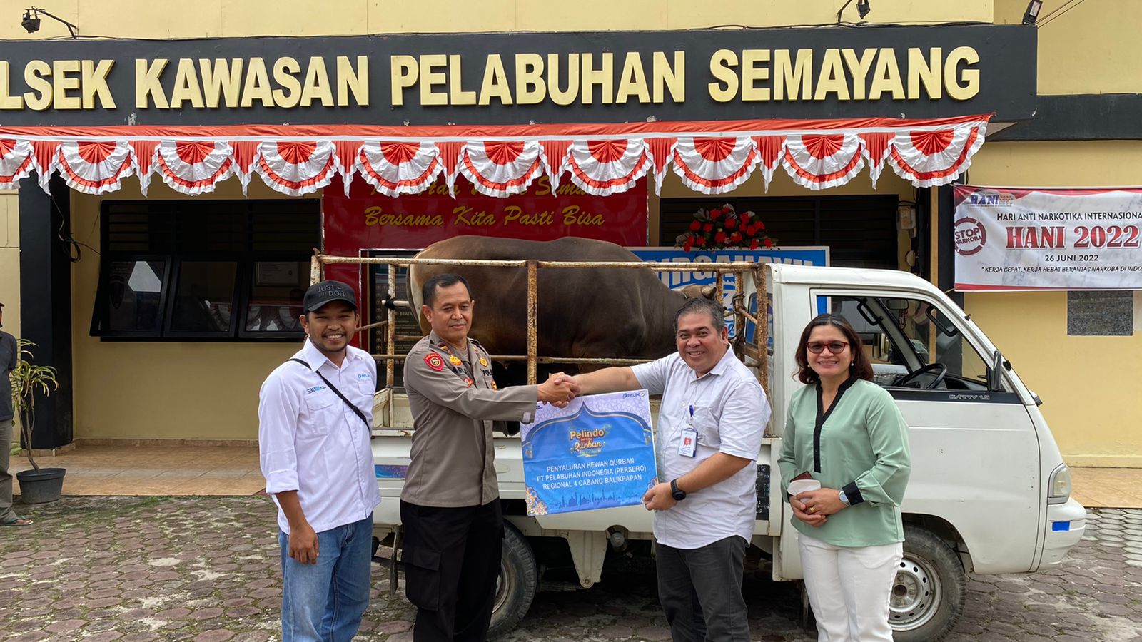 Dalam perayaan Iduladha tahun 1443 Hijriah/2022 Masehi ini, total ada empat ekor sapi kurban yang disiapkan. Satu ekor di antaranya disumbangkan untuk Polsek Kawasan Pelabuhan Semayang. Diserahkan sebelum hari raya, oleh General Manager (GM) Pelindo Regional IV cabang Balikpapan H Iwan Sjarifuddin dan diterima oleh Kapolsek Kawasan Pelabuhan Semayang AKP Abu Sangit.