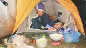 Usai mendirikan tenda dan mengganti pakai, waktunya makan siang sembari menikmati suasana keindahan puncak gunung sumbing dari kejauhan. Dan beristirahat hingga malam pun tiba. Waktunya kita bobo manja, mempersiapkan tenaga untuk summit ke puncak sejati esok hari. Bersambung…!!!