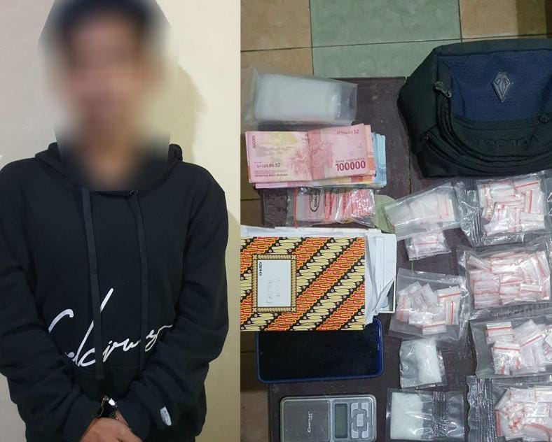 “Ditemukan juga satu unit handphone, satu bandel plastik klip pembungkus sabu, satu buah sendok takar sabu dari sedotan plastik, timbangan digital, alat pres, serta uang tunai sebesar Rp 2 juta rupiah,” ungkap Yusuf.