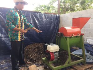 “Alhamdulilah, kami tidak perlu lagi bergantung dengan pabrik. Kami sudah bisa buat pupuk sendiri disini. Kualitasnya pun tidak kalah dengan pupuk buatan pabrik. Kami memanfaatkan Bahan-bahan yang berasal dari lingkungan disini. Seperti, kotoran sapi, telur ayam, daur ulang daun kering, air dari kolam ikan dan masih banyak lainnya,” ungkapnya.