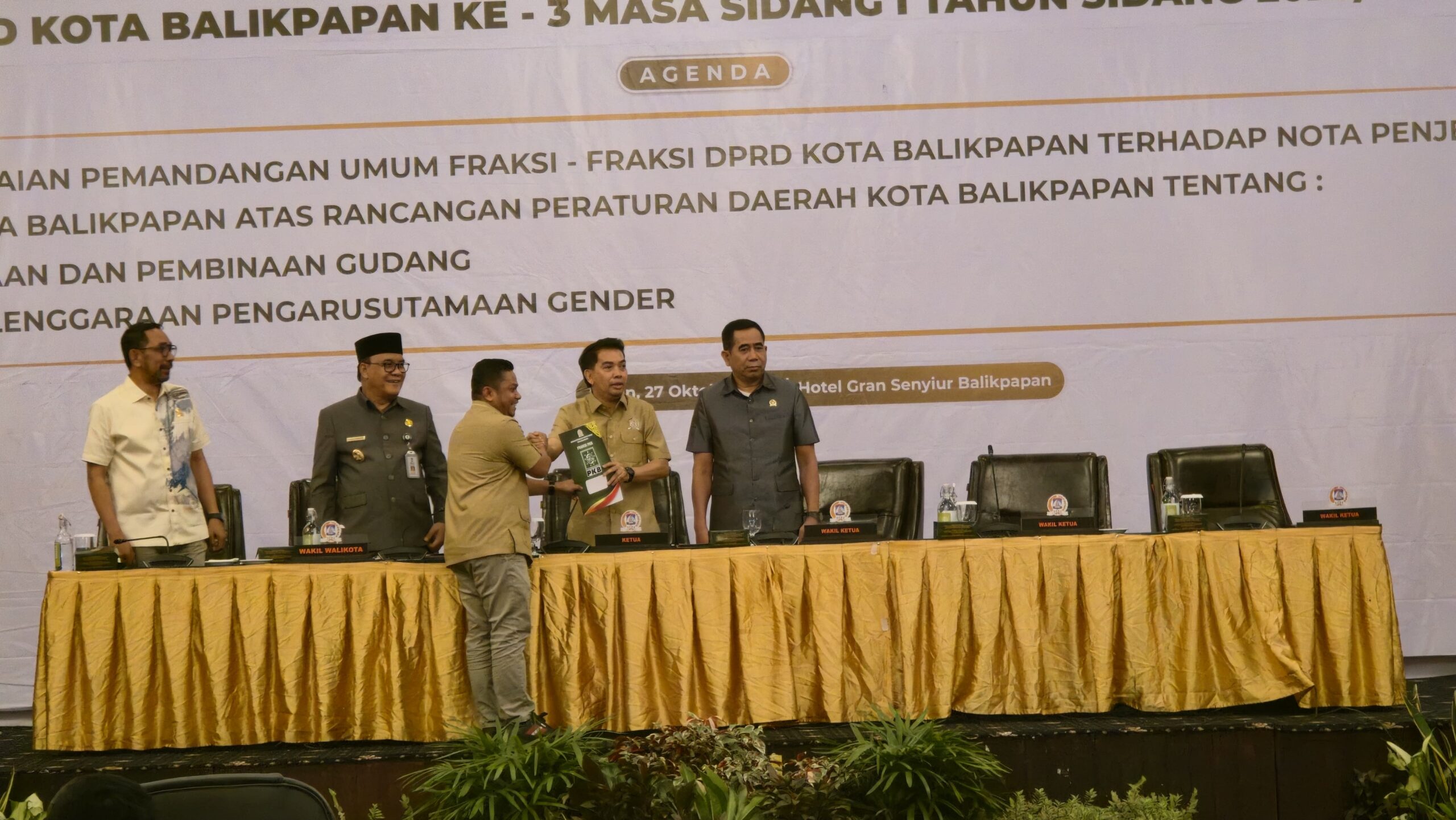 LINTASRAYA.COM BALIKPAPAN — Dewan Perwakilan Rakyat Daerah (DPRD) Kota Balikpapan menggelar Rapat Paripurna ke-3 Masa Sidang I Tahun 2025 di Hotel Grand Senyiur Balikpapan, Senin (27/10/2025). Dalam agenda tersebut, dewan membahas dua rancangan peraturan daerah (Raperda) penting, yakni Raperda tentang Penyelenggaraan Pengarusutamaan Gender dan Raperda tentang Penataan dan Pembinaan Gudang.