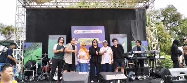Pimpinan Pegadaian Kanwil IV Balikpapan Julianto (pakai topi) foto bersama group band J-Rock, usai performance.