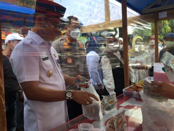 Ia juga mengapresiasi para pedagang yang tetap melaksanakan Protokol Kesehatan (Prokes) dengan menggunakan pembatas plastik antar penjual dan pembeli dalam menjajahkan dagangannya.