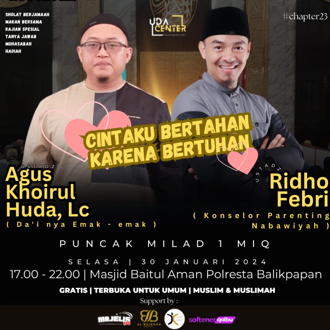 BALIKPAPAN, lintasraya.com – Yuk Hadiri Milad pertama MIQ. Dengan harapan bisa mengingatkan kembali cerita perjalanan terbentuknya Majelis IQ dan pastinya ilmu yg bermanfaat dari Ustadz kondang Balikpapan yakni, Ustadz Agus Khoirul Huda.