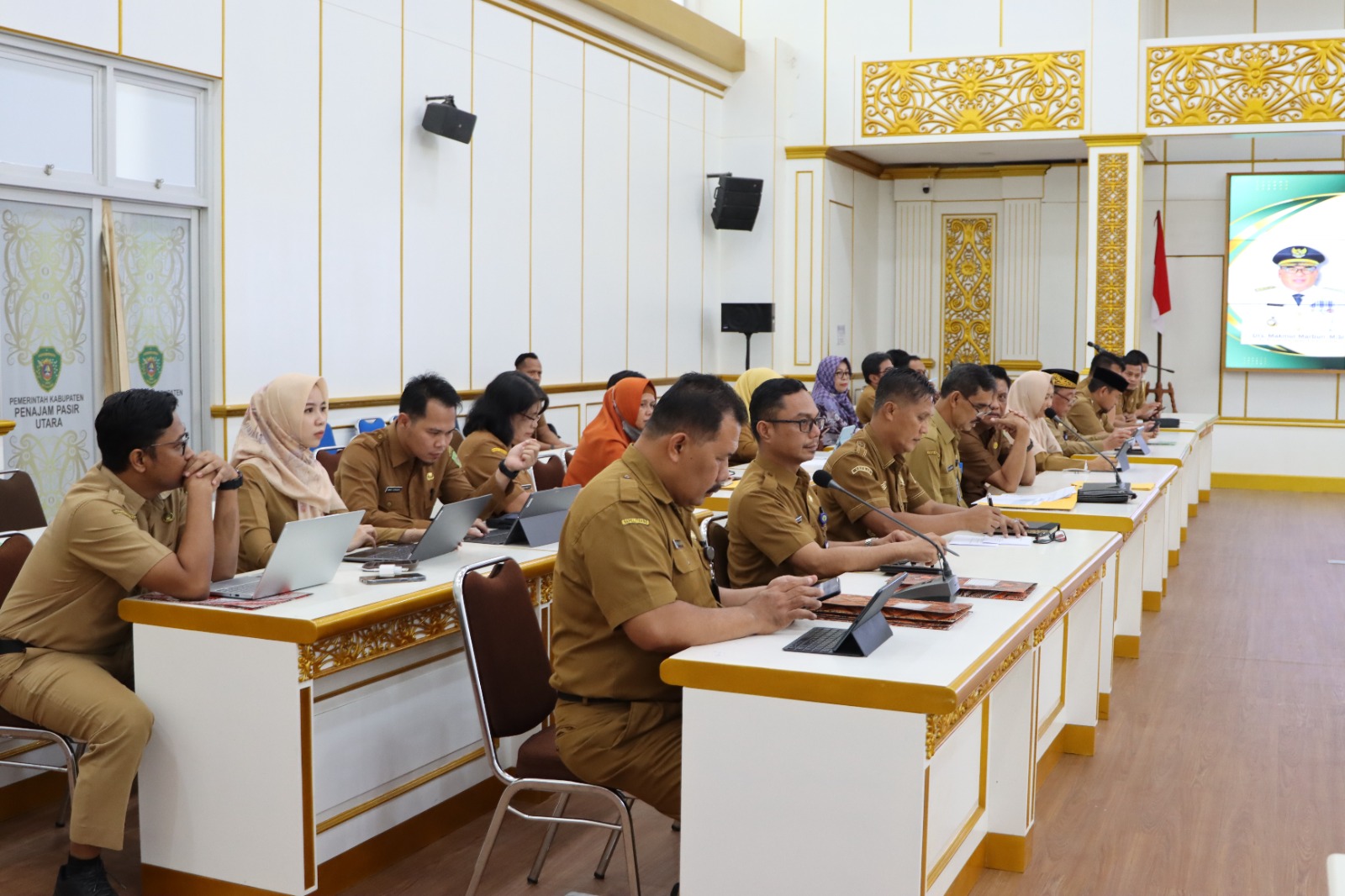 PENAJAM, lintasraya com – Pemerintah Kabupaten Penajam Paser Utara menggelar rapat terpadu yang bertujuan untuk membahas data terkait tingkat pengagguran dan penduduk miskin di seluruh kecamatan, kelurahan, dan desa di wilayah PPU. Rapat yang dipimpin Penjabat (Pj) Bupati PPU Makmur Marbun dan dihadiri oleh Asisten I Bidang Pemerintahan dan Kesra Sekretariat Daerah (Setda) PPU Nicko Herlambang, kepala perangkat daerah terkait, camat, lurah dan kepala desa se-Kabupaten PPU. Kegiatan dilaksanakan di ruang rapat lantai III Kantor Bupati, Senin (01/04/2024).