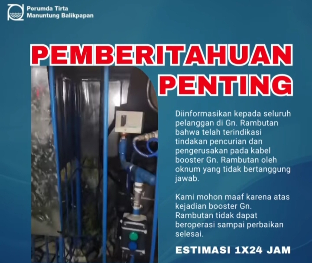 PTMB juga melaporkan insiden pencurian dan perusakan kabel booster di kawasan Gunung Rambutan, yang menyebabkan terganggunya pelayanan air di daerah tersebut.