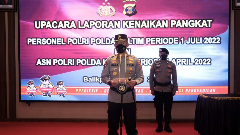 “Saya atas nama keluarga besar Polda Kaltim menyampaikan selamat kepada personel yang telah melaksanakan korps raport kenaikan pangkat,” kata Imam dalam amanatnya.