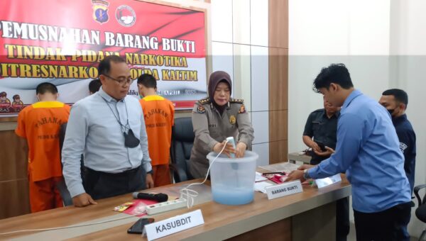 Pemusnahan yang dilaksanakan, berdasarkan Surat Perintah Pemusnahan Barang Bukti Nomor : SP.Musnah/48.e / IV / RES.4.1 / 2023 tersebut dilakukan dengan cara di blender lalu di larutkan ke dalam kloset.Hal ini diungkapkan Panit Subdit II DitResnarkoba Polda Kaltim IPTU Rakib S.H, ditemui usai pemusnahan hari ini.