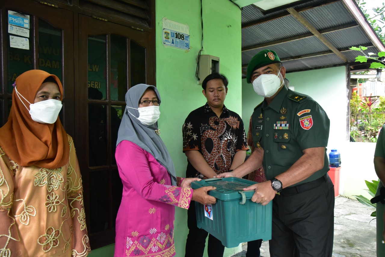 Serta Asrendam Kolonel Inf Bambang Yudi Kustiwa, S.Sos., M.M., bersilaturahmi Ny.Poniah istri alm. Sertu Purn Jaiman (satuan Bekangdam) dengan alamat Komplek Perum PT. Her Mandiri I kelurahan sepingan.