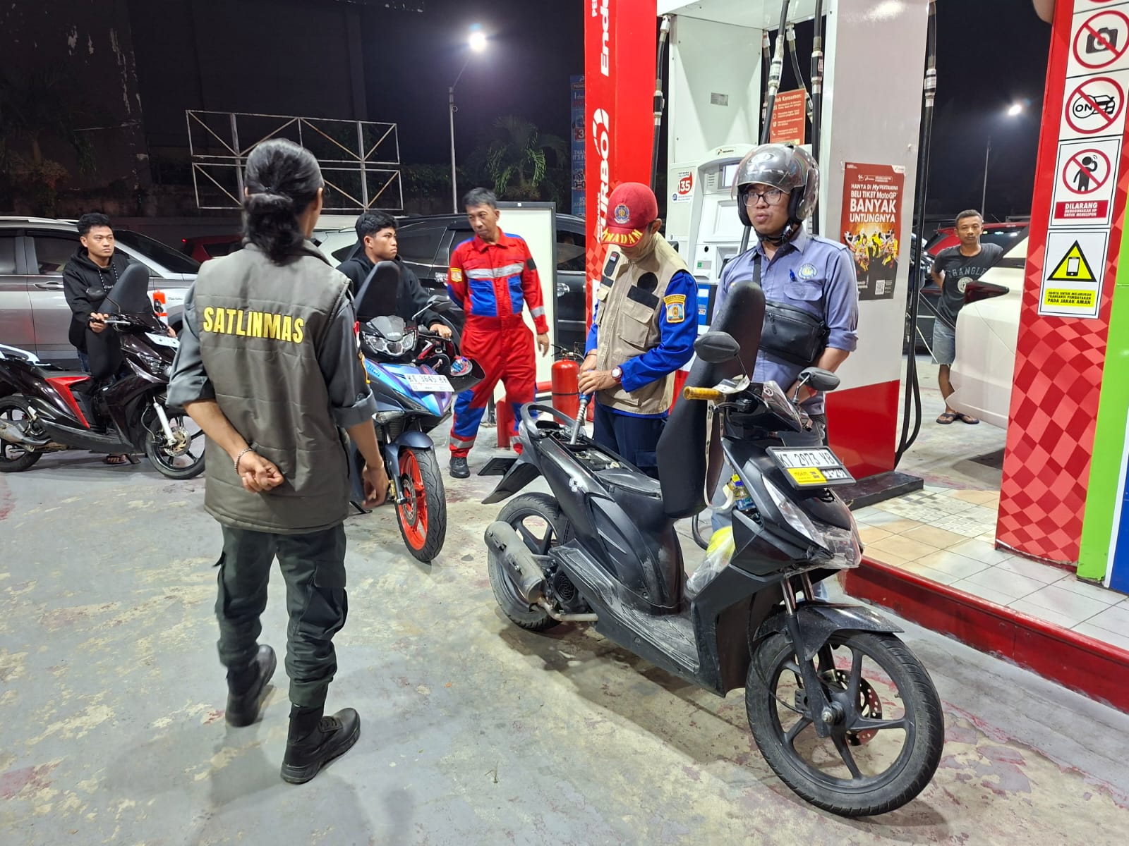 “Hari ini kami menurunkan personel Linmas untuk memperkuat pengamanan di SPBU. Mereka kami tempatkan di titik-titik yang dianggap rawan gangguan. Personel Linmas kelurahan dan kecamatan kami libatkan karena mereka lebih mengenal karakter wilayah masing-masing,” ujar Boedi.