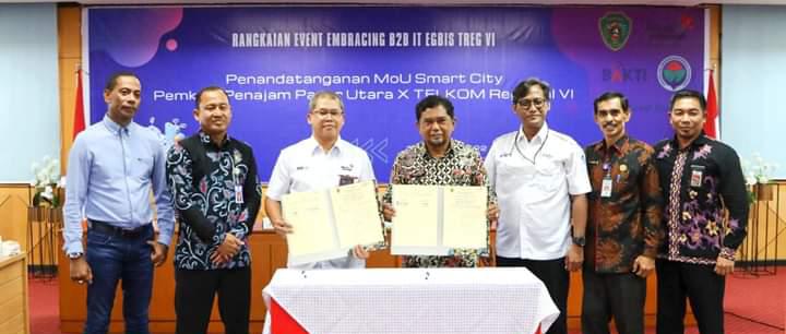 PENAJAM, lintasraya.com – Pelaksana Tugas (Plt) Bupati Penajam Paser Utara (PPU), Hamdam, menandatangani Kesepakatan Bersama antara Pemerintah Kabupaten (Pemkab) PPU dengan PT Telekomunikasi Indonesia Tbk tentang Implementasi dan Pengembangan Smart City di Kabupaten Penajam Paser Utara.