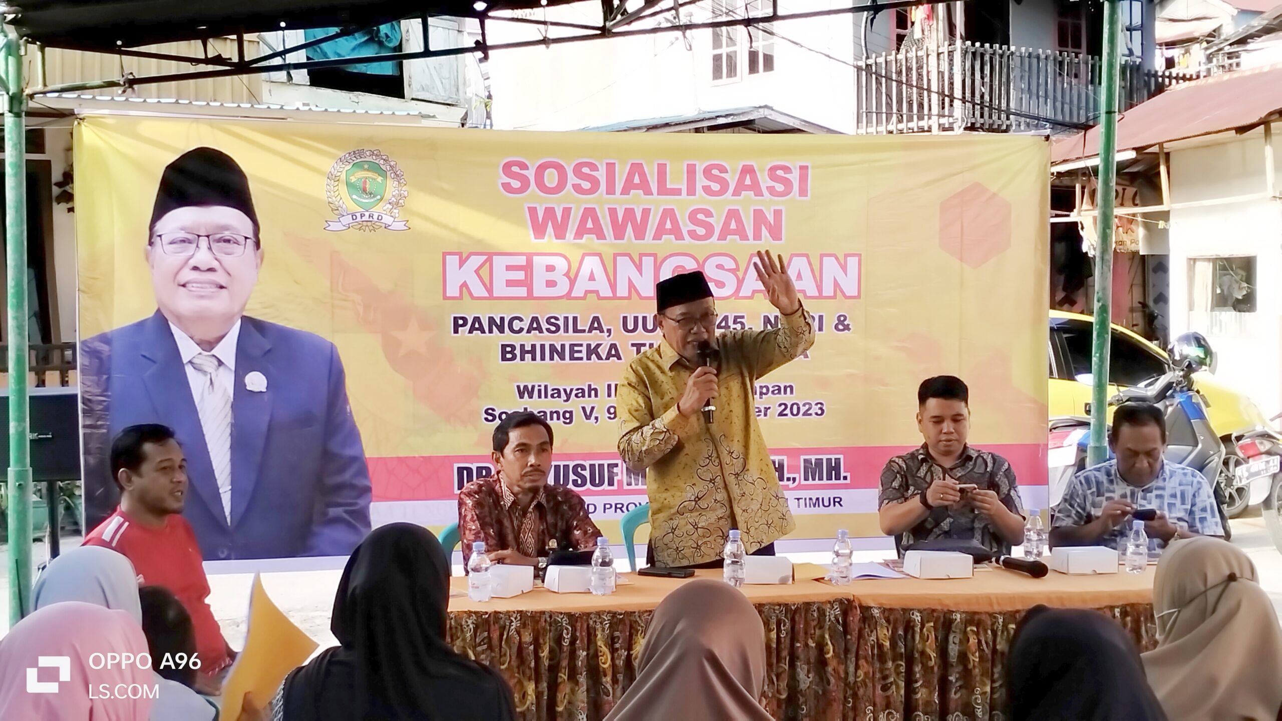 BALIKPAPAN, lintasraya.com – Wakil Ketua Komisi I DPRD Kaltim, DR H Yusuf Mustafa SH MH, dari Fraksi Partai Golkar, terus mensosialisasikan Wawasan Kebangsaan (Wasbang).